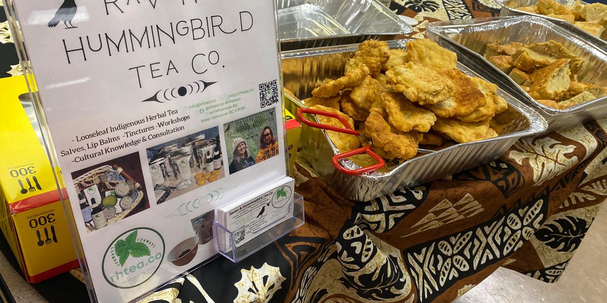 RHTEA CO a Tea and Bannock Service at Arts Umbrella, September 30th 2022, Orange Shirt Day. Over 215 pieces of both baked and fried bannock served alongside Indigenous Herbal teas from Raven and Hummingbird Tea CO. with Senaqwila Wyss